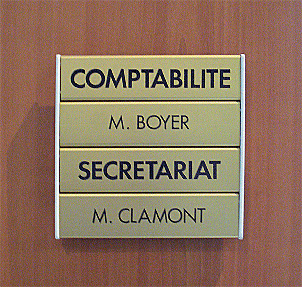 Plaque signalétique modulable en aluminium anodisé, décor transcript adhésif