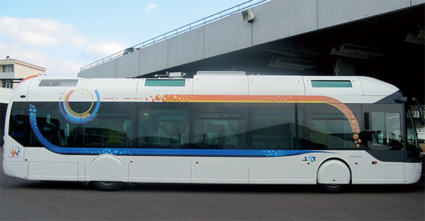 Trolleybus, décor réalisé en vinyl découpé à la forme, impression numérique pelliculée, vinyl micro perforé sur les parties vitrées