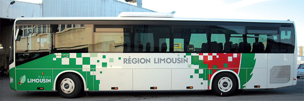 Bus, décor réalisé en vinyl impression numérique pelliculée et transcript adhésif