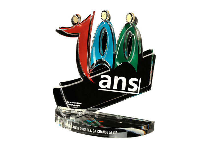 Trophée Plexi 15 mm, chants polis brillants - Marquage sérigraphie