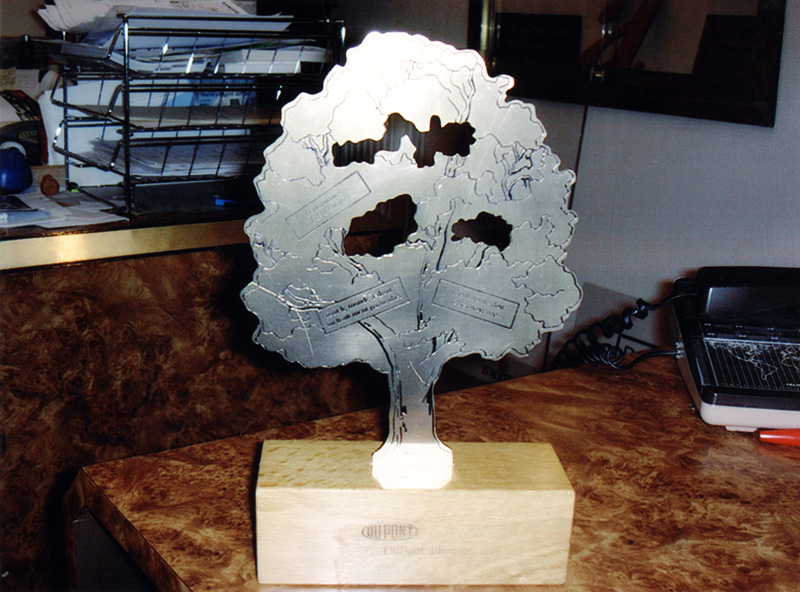 Trophée Laiton découpe CN gravé chiimie